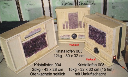 Liegender Kristallofen mit Unterzug und zusätzlicher Kristallkugel im Amethystenfeld. Die Bauversion 015 wird aber nur 100° statt 120°C. Achtung: Kristallöfen werden 120°C und mehr, zwischen den Kristallspitzen.