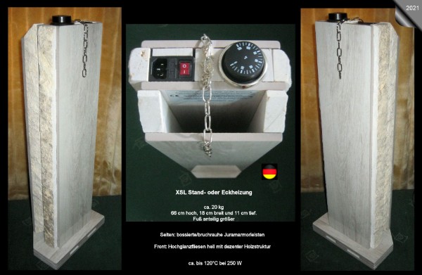 Dafür auch XSL-Standgerät (Eckheizung) ideal. Standgeräte haben breiteren Fuß und keine Einhängekette.