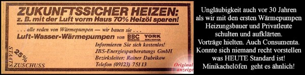 Einführung der allerersten Wärmepumpen UND allgemeine Energiesparberatung.
